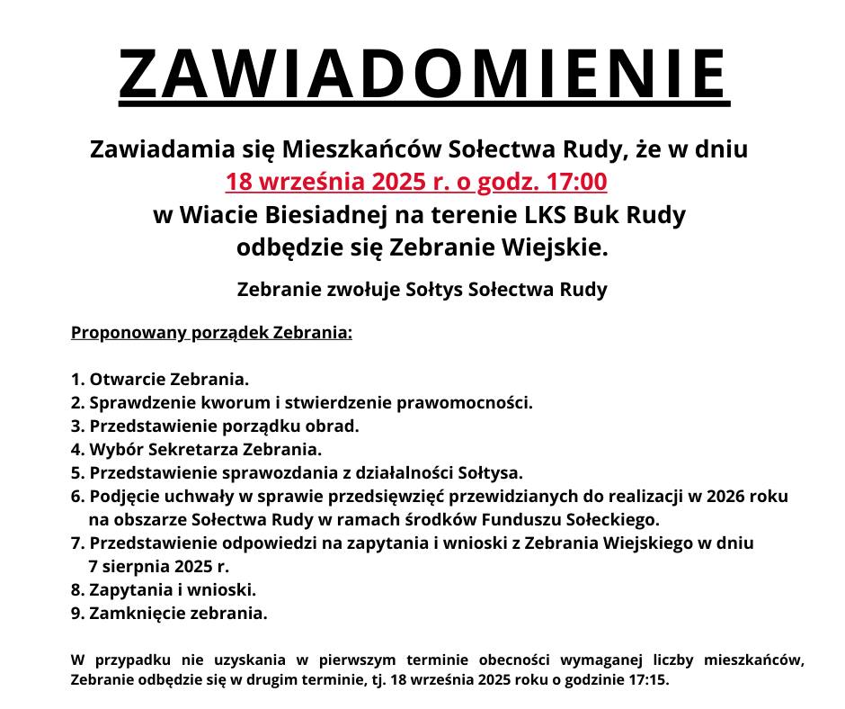 Zebranie zwołuje Sołtys Sołectwa Rudy