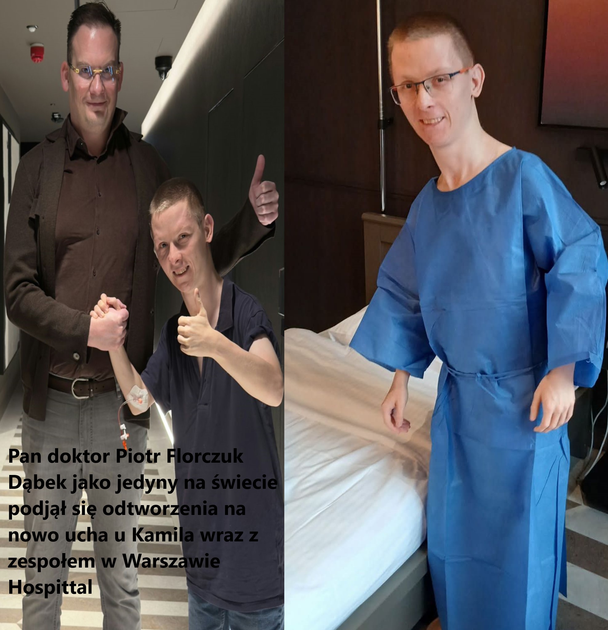 Kamil opowiada:„Operacja w Hospittal w Warszawie wniosła w moje życie ogromną radość i szczęście. Mam nowe ucho – jest jeszcze obrzęknięte, ale zaczyna nabierać kształtu i już po mału odstaje od czaszki tak, jak powinno być. Pobranie chrząstki z żebra, wyrzeźbienie ucha i wszczepienie go na czaszkę to mistrzostwo świata przy tym naprawienie tkanek. Przeszczepy się przyjęły i wszystko się goi.”Po operacji ani nie wymiotowałem ani nie miałem żadnych odgniotów na kości ogonowej ani na stopie mistrzostwo świata jak się mną zajeli w Szpitalu Hospittal na Ząbkowskiej we Warszawie.Skrót tej niezwykłej operacji można oglądnąć pod tym 2 linkami https://www.facebook. com/reel/839739005644954 i tez pod tym linkiem https://www. instagram.com/p/DReUixmDBcU/