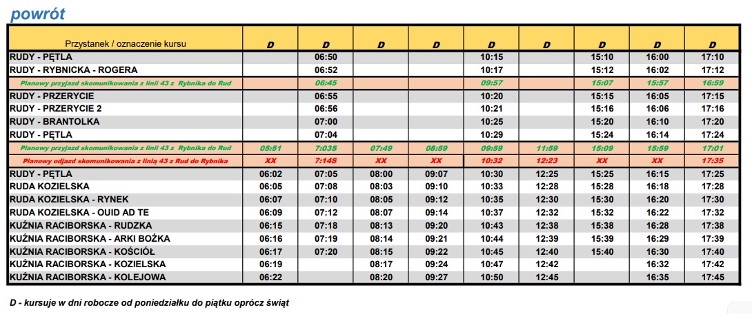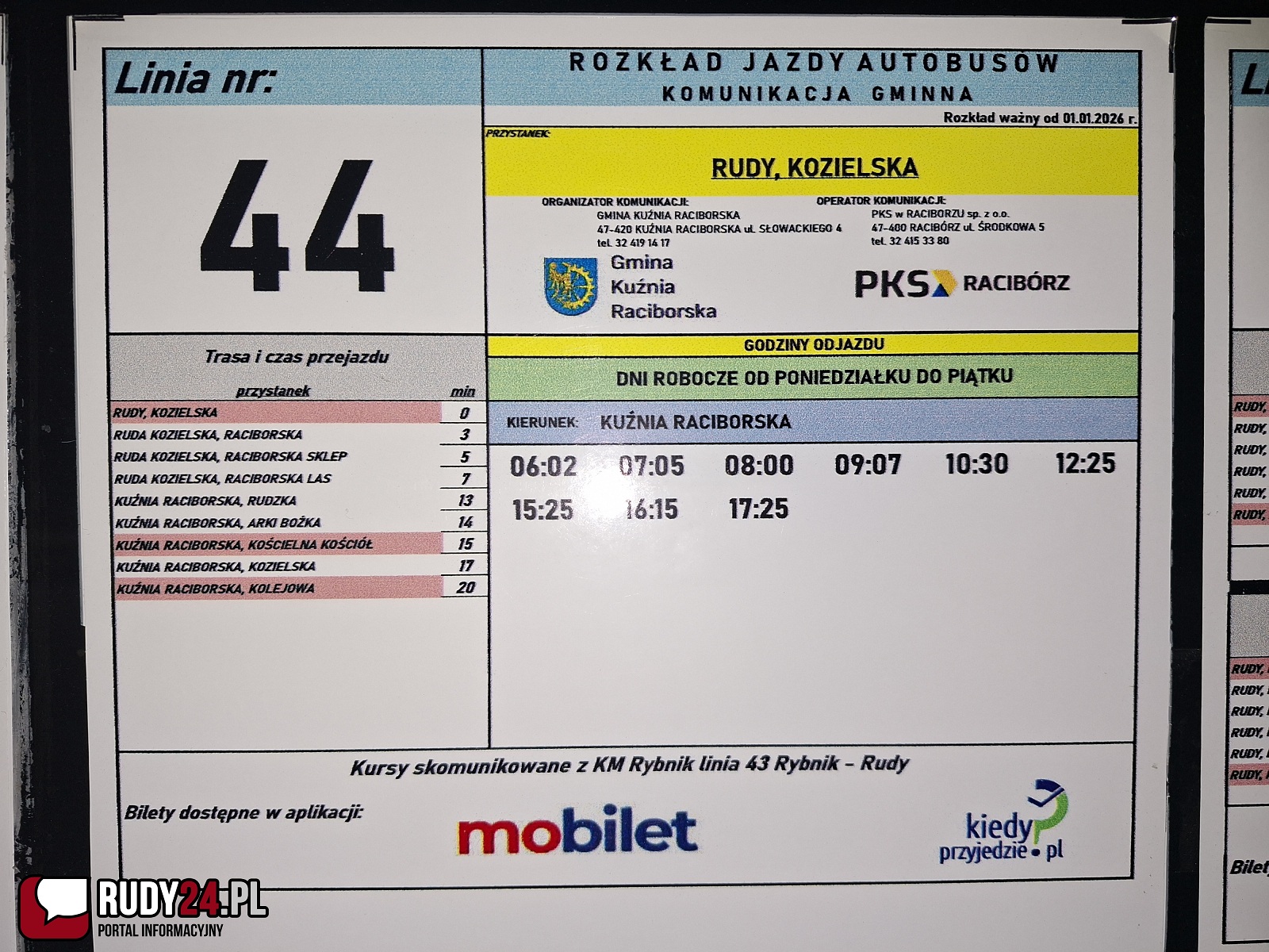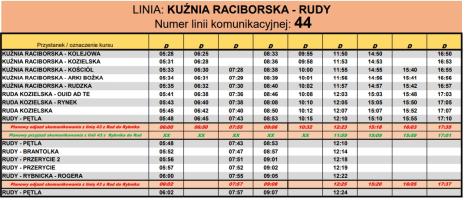 PKS w Raciborzu Sp. z o.o. informuje, że od 2 stycznia 2026 r. obowiązywać będzie nowy rozkład jazdy dla linii nr 44 na trasie KUŹNIA RACIBORSKA – RUDY.